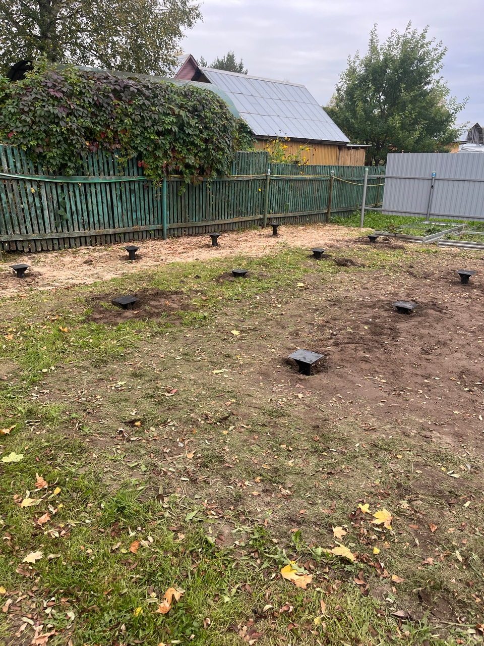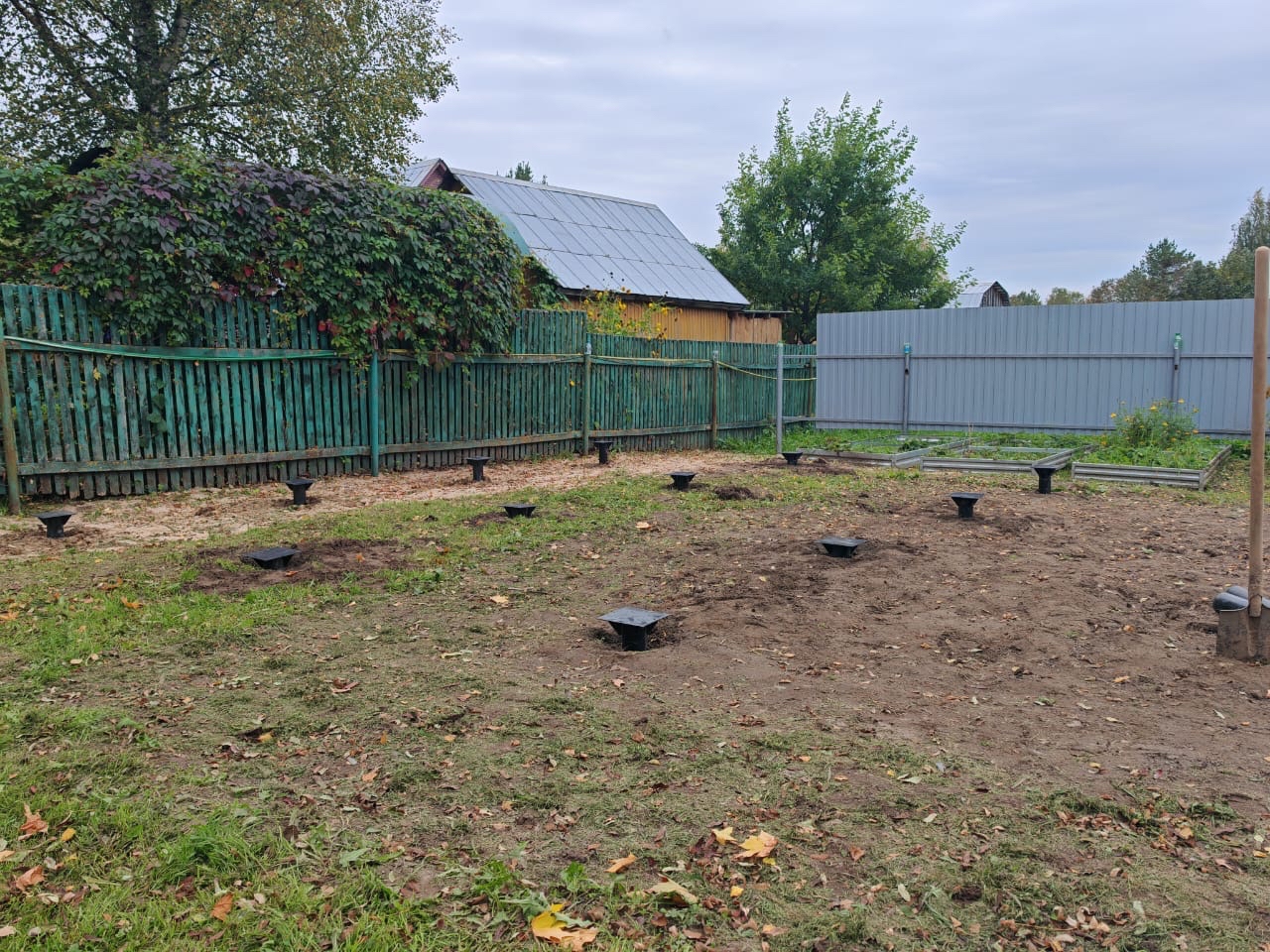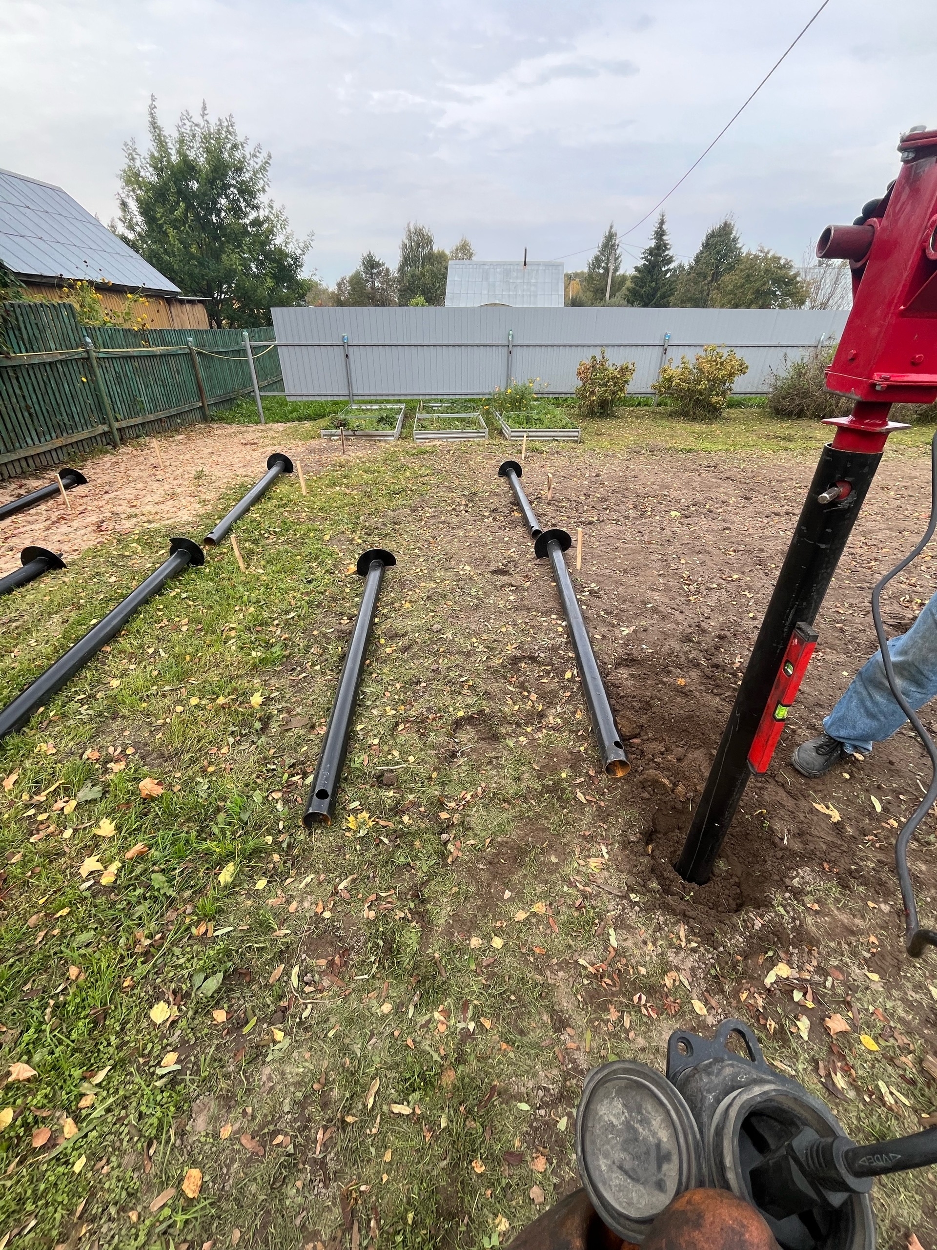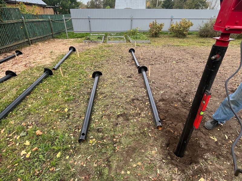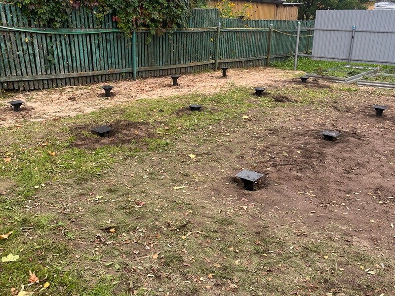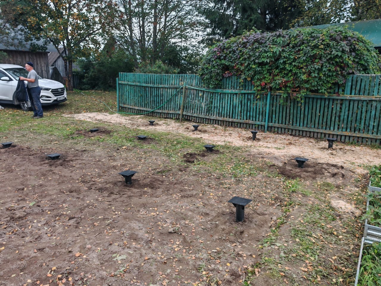 Нами была проделана работа по монтажу винтовых свай (89 диаметр) под баню.