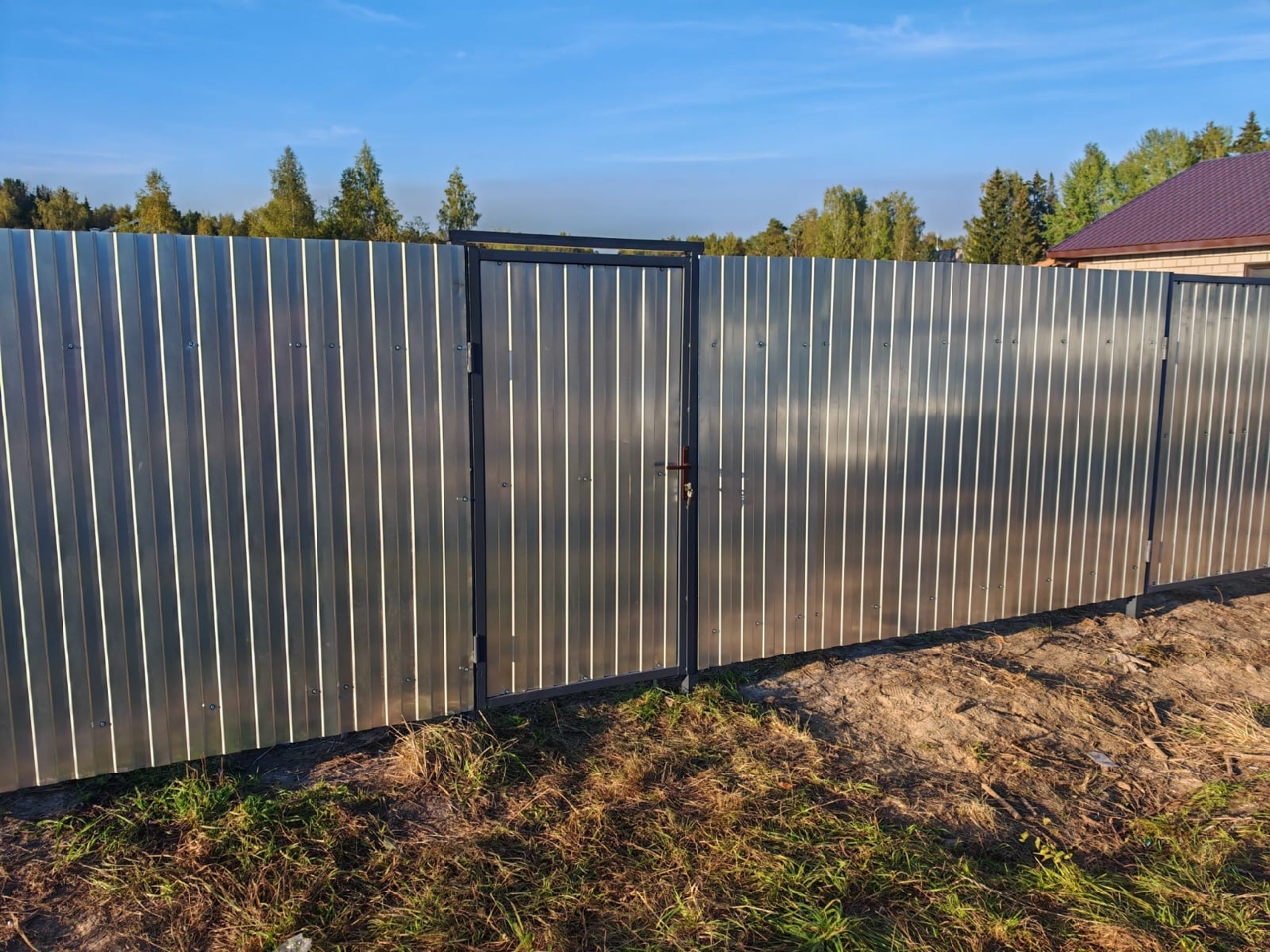 В поселке Хохлово был изготовлен забор из профлиста, а так же калитка и распашные ворота. Прочный, долговечный и экономичный вариант ограждения, состоящий из гофрированных металлических листов, закрепленных на каркасе из столбов и лаг. Они обеспечивают высокую приватность, защиту от шума и пыли, а также отличаются широкой палитрой цветов, устойчивостью к коррозии, благодаря чему популярны для дач и частных домов.