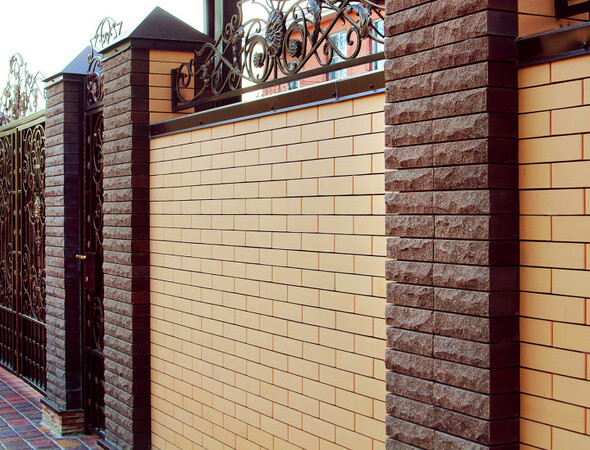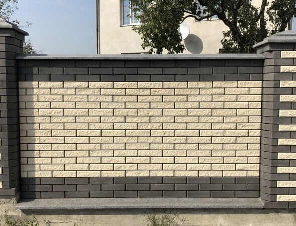 Облицовочный кирпич. Он дороже в 2-3 раза, при строительстве заборов один из самых востребованных. Имеет довольно привлекательный внешний вид.