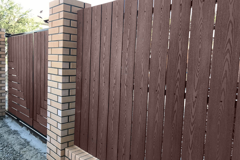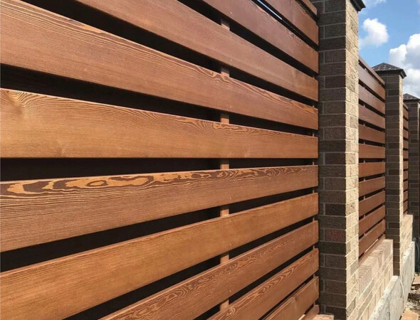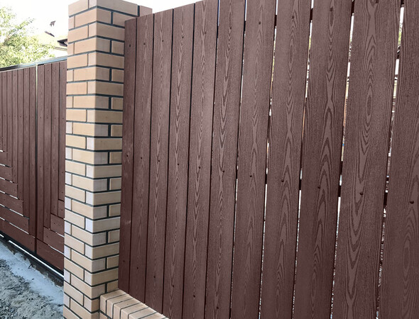 - Возможность комбинировать с другими материалами, например, металлическими столбами.