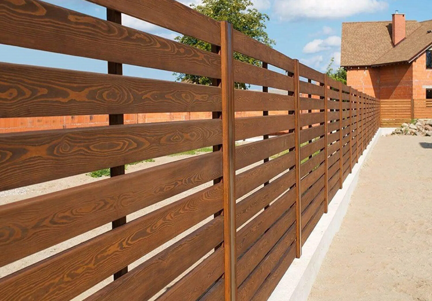 Штакетник — один из самых популярных видов деревянных заборов. Он состоит из вертикальных досок (штакетин), закрепленных на горизонтальных лагах. Такой забор из дерева идеально подходит для тех, кто ценит легкость и воздушность.