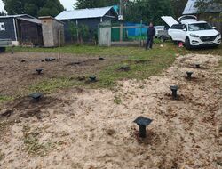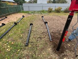 Нами была проделана работа по монтажу винтовых свай (89 диаметр) под баню.