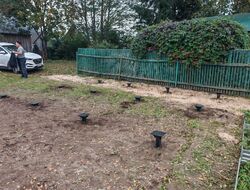 Ребята приехали вовремя, со своим инструментом и генератором (у нас на участке пока нет электричества). Начали с демонтажа старого ограждения. Столбы ставили методом бутования щебнем — стоят как влитые. Особенно понравилось, что каждый столб и каждую лагу проверяли лазерным уровнем. Сварные швы аккуратные, сразу их зачистили и подкрасили в цвет каркаса.