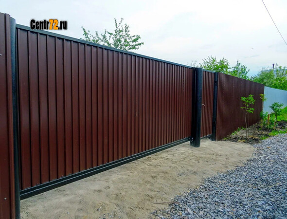 В деревне Доронино нами был изготовлен забор из профлиста, а так же калитка и откатные ворота с автоматикой. Прочный, долговечный и экономичный вариант ограждения, состоящий из гофрированных металлических листов, закрепленных на каркасе из столбов и лаг. Они обеспечивают высокую приватность, защиту от шума и пыли, а также отличаются широкой палитрой цветов, устойчивостью к коррозии, благодаря чему популярны для дач и частных домов.